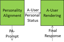 Personality Alignment formulates an A-User Personal Status (using MPAI-Personal Status) appropriate to the User State and produces and sends to: