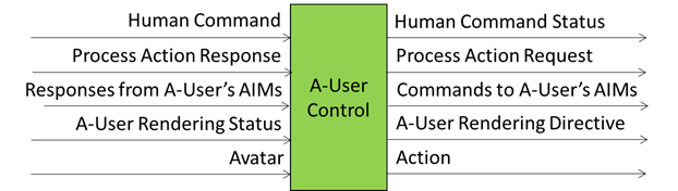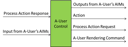 - Drives A-User operation by controlling how the A-User interacts with the environment.