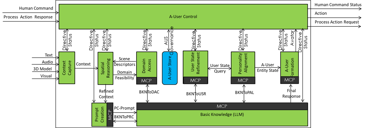 - Provides the A‑User Entity State to BKN and A‑User Formation (AUF) to govern behaviour and expression.
