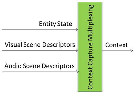 The Context Capture Multiplexing (PGM-CCX) AIM integrates Audio Scene Descriptors, Visual Scene Descriptors, and Entity State into Context: